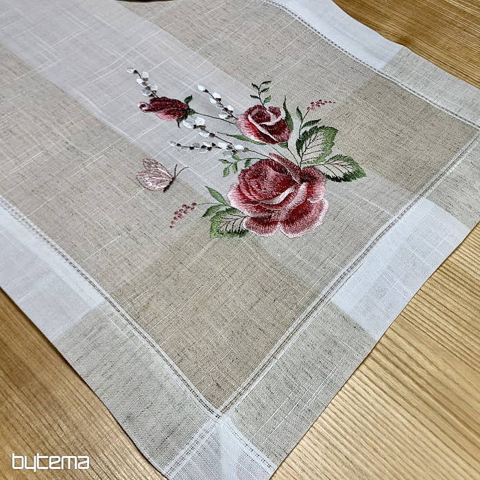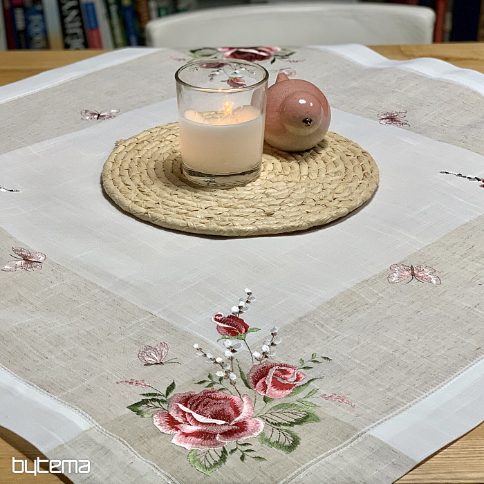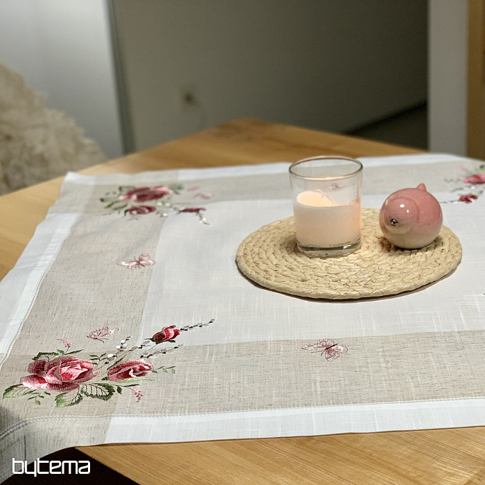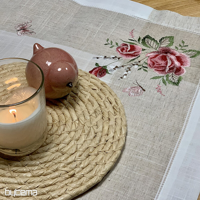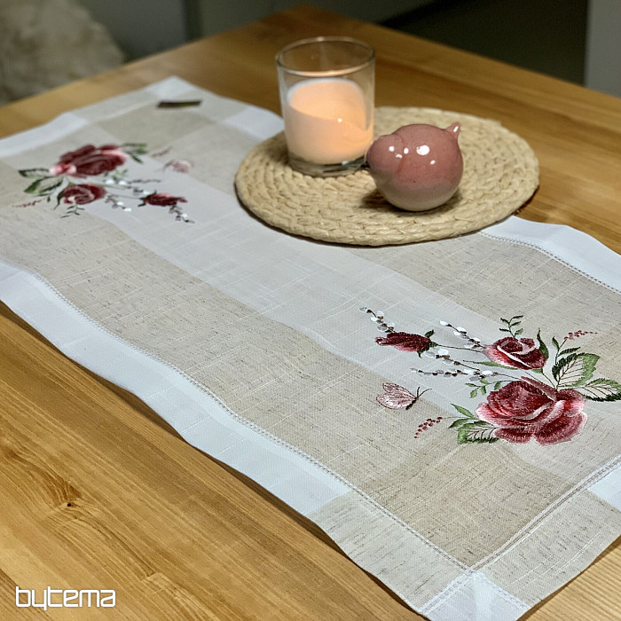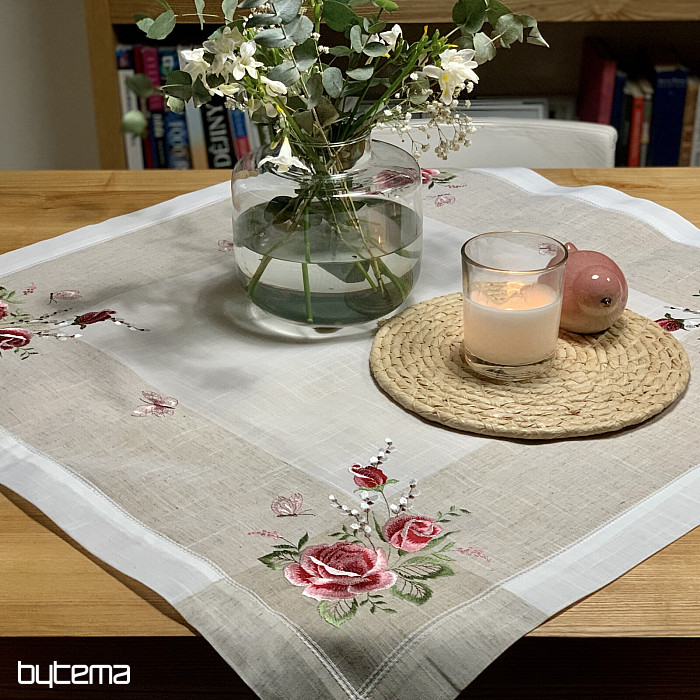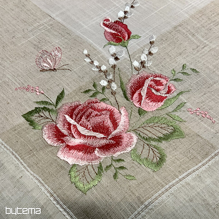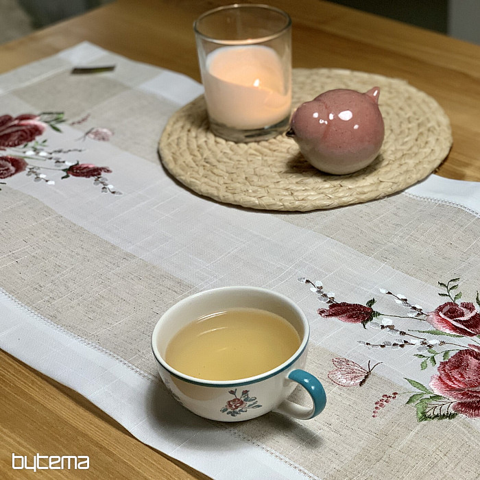 Haftowany obrus i szalik z motywem róż i kotków, nie tylko dla romantycznych dusz.