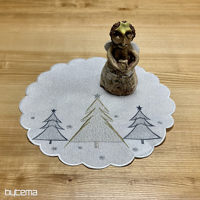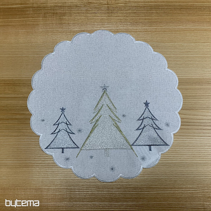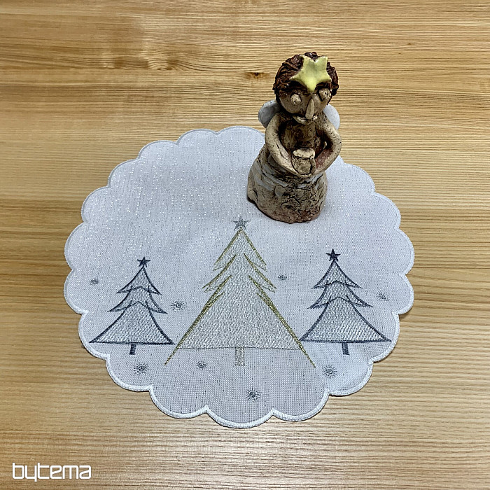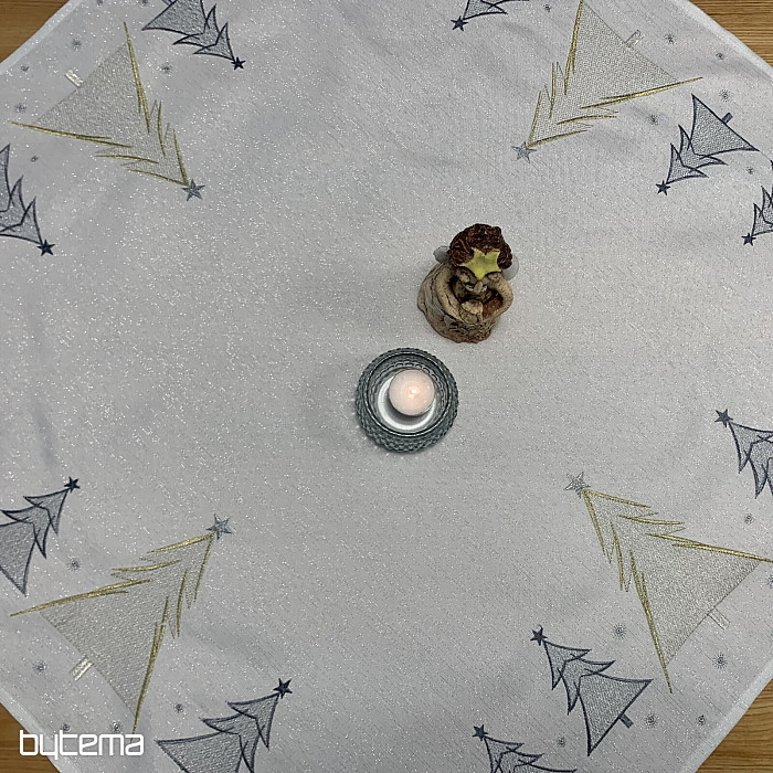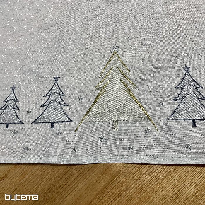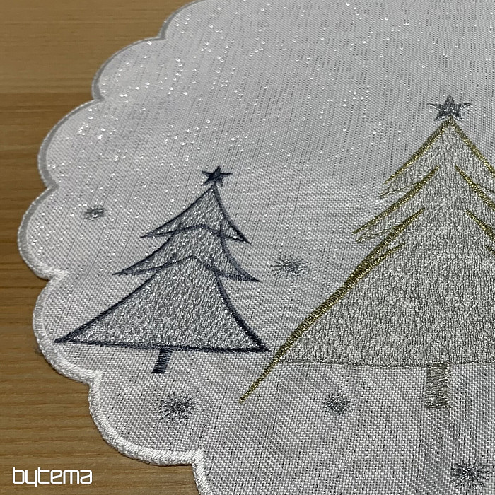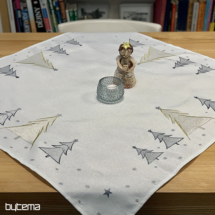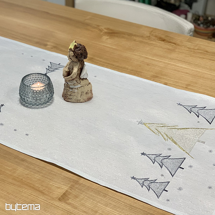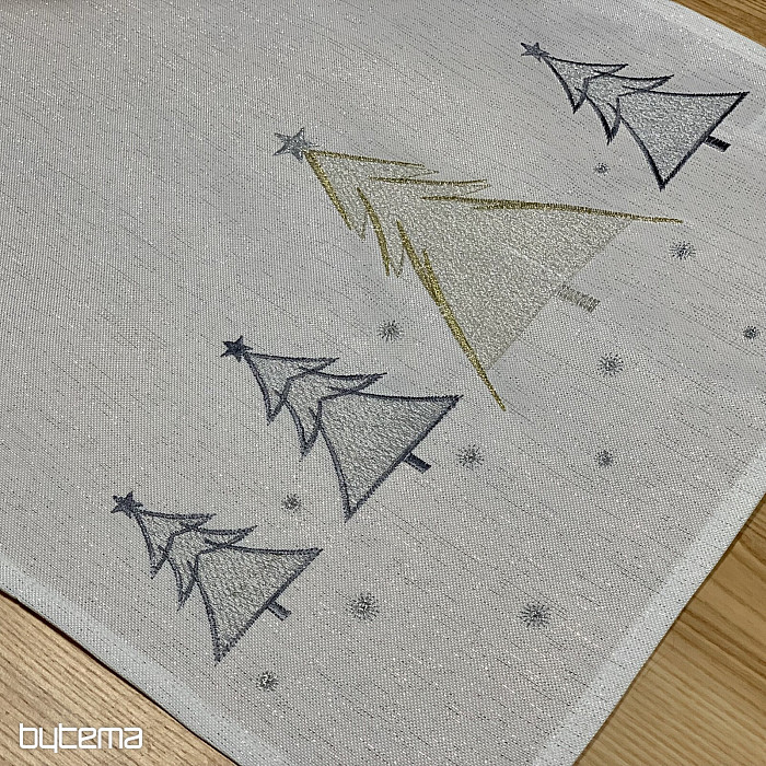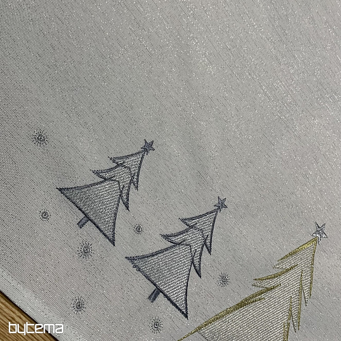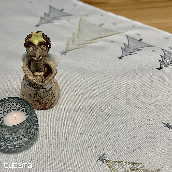 Gustownie i delikatnie haftowany obrus świąteczny i szalik z motywem choinek w dwóch kolorach będzie uroczym dodatkiem do Twojego domu.