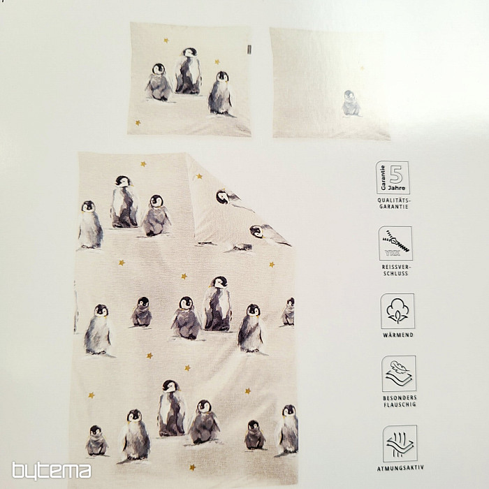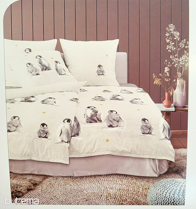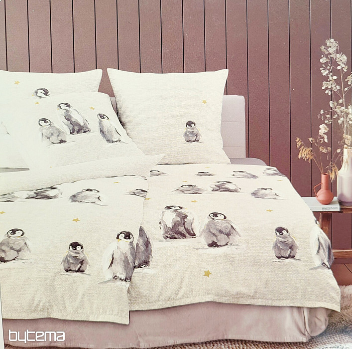 Nowoczesna pościel flanelowa z uroczym motywem pingwinów rozgrzeje Cię w chłodne noce.