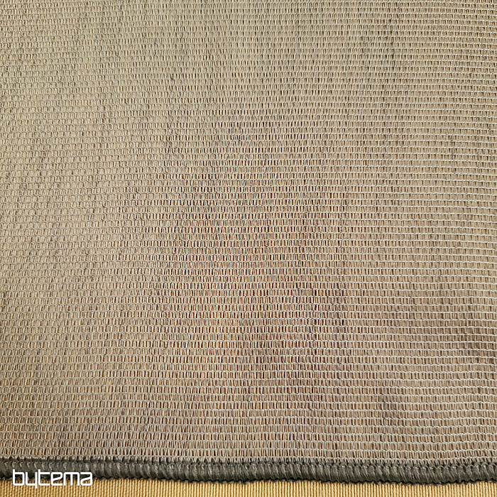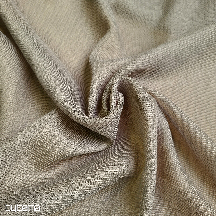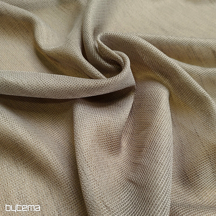 Zasłona jest miękka w dotyku, ale gęsto tkana ciemnobeżową nitką tworzącą małe kwadraty.