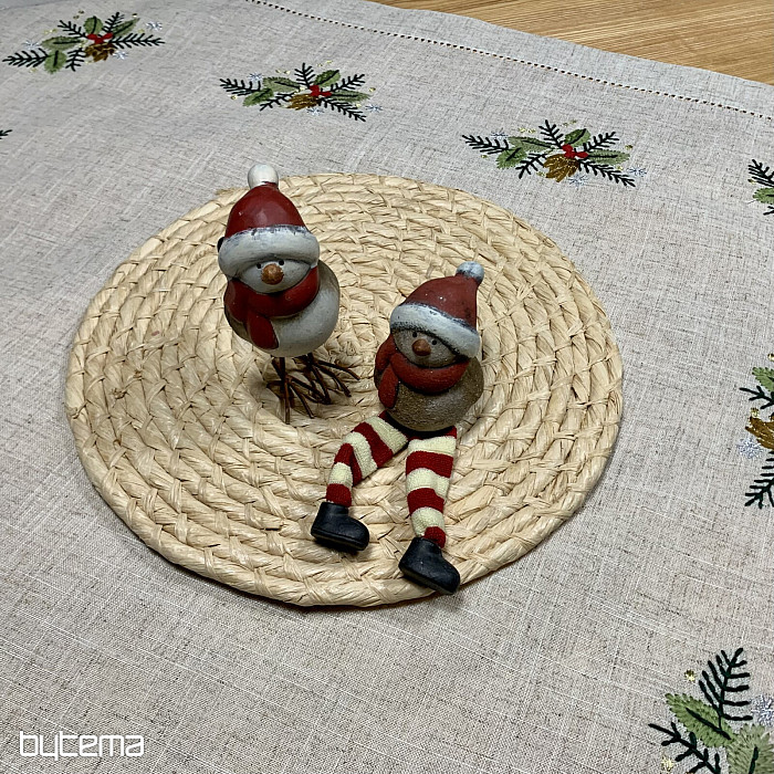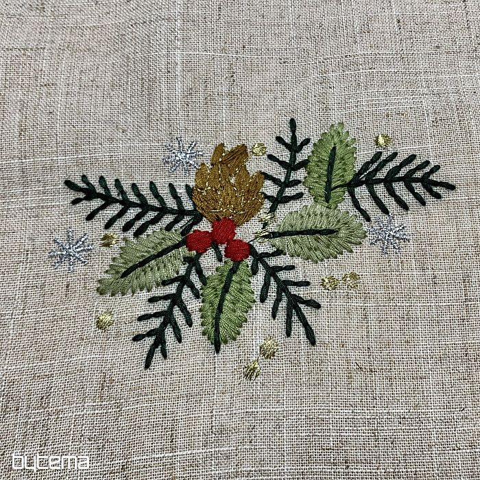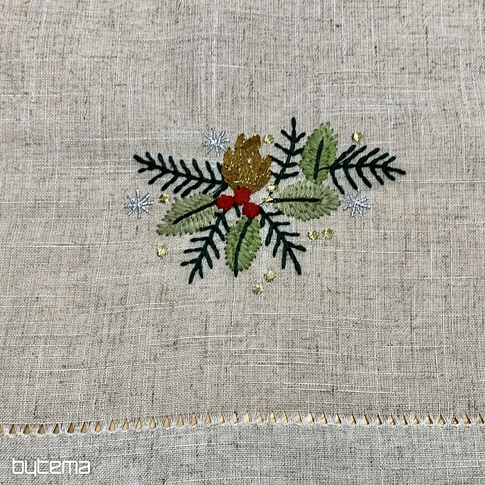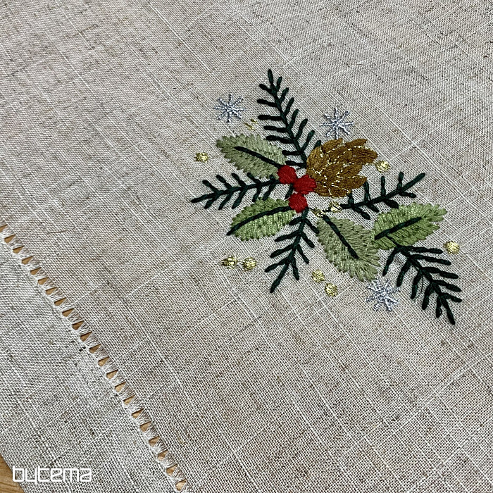 Haftowany obrus z motywem świątecznych gałązek będzie piękną ozdobą Twojego domu.