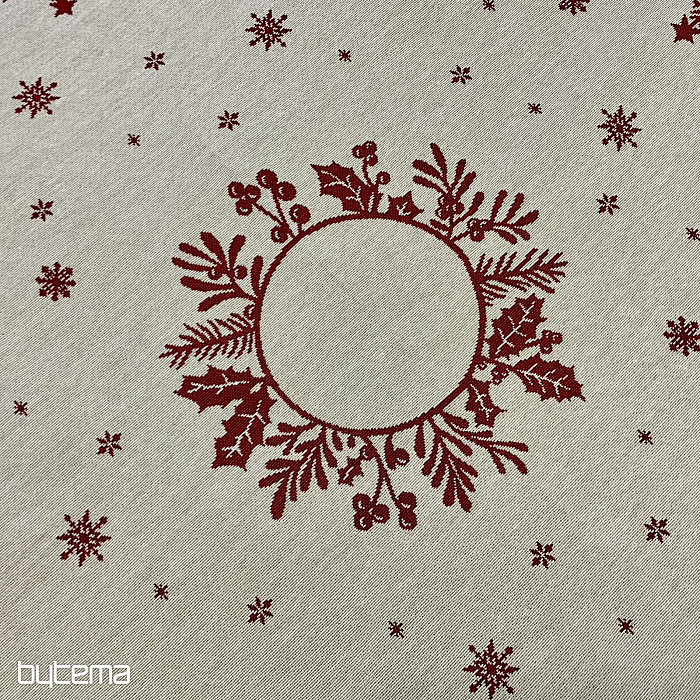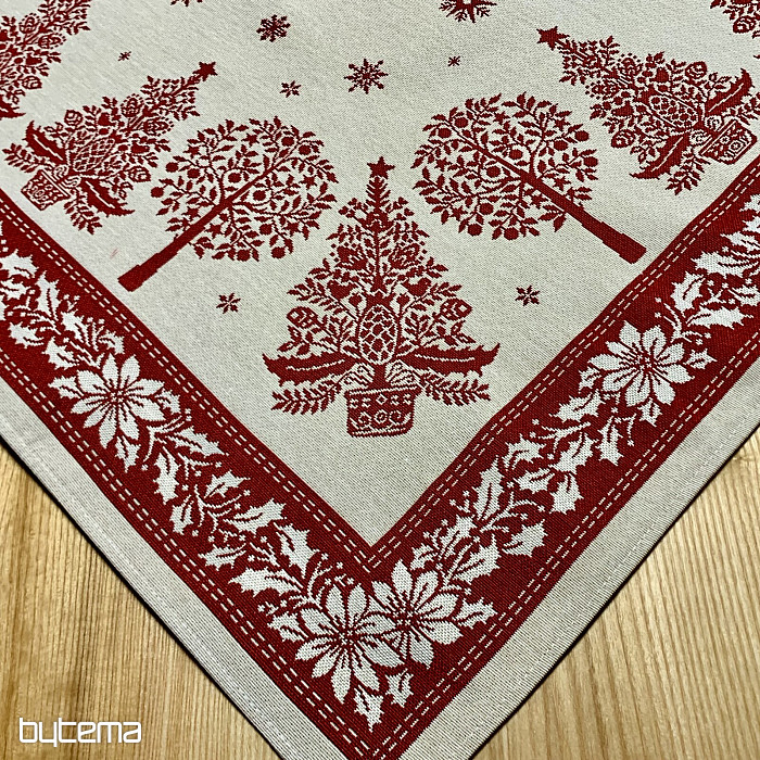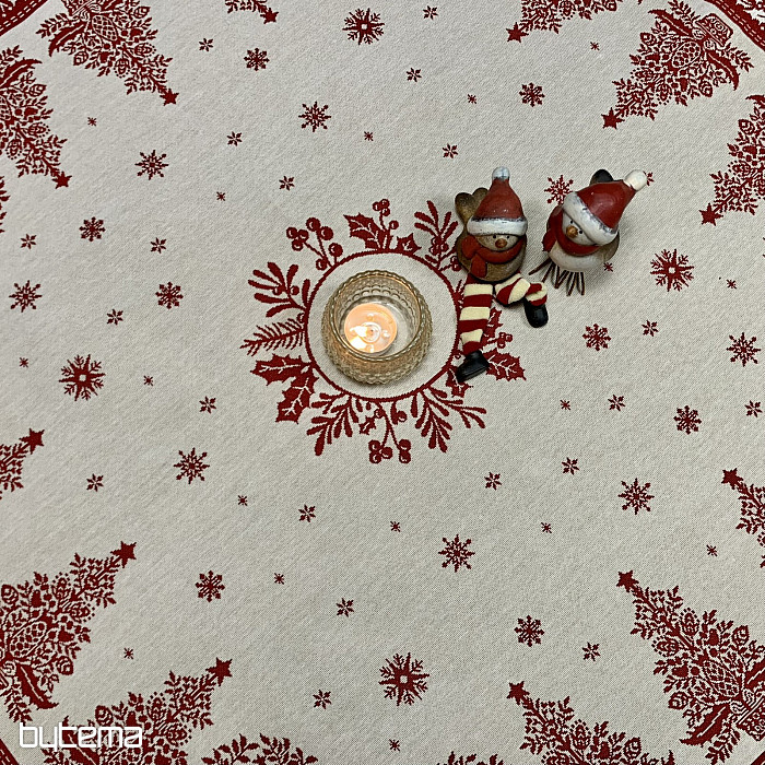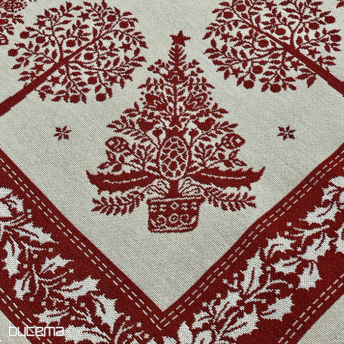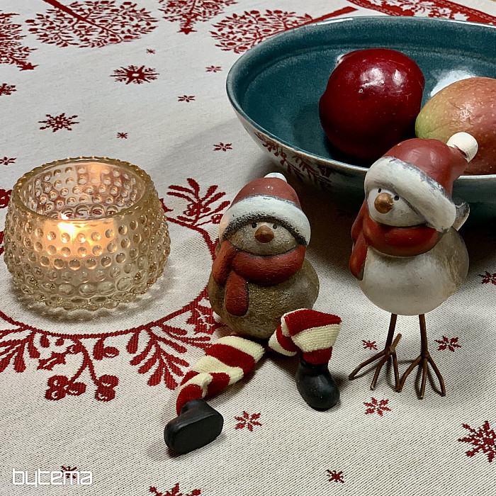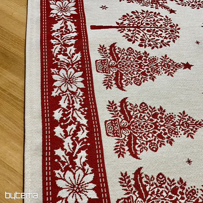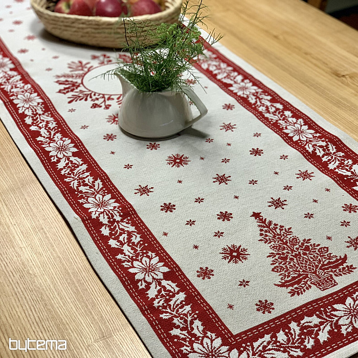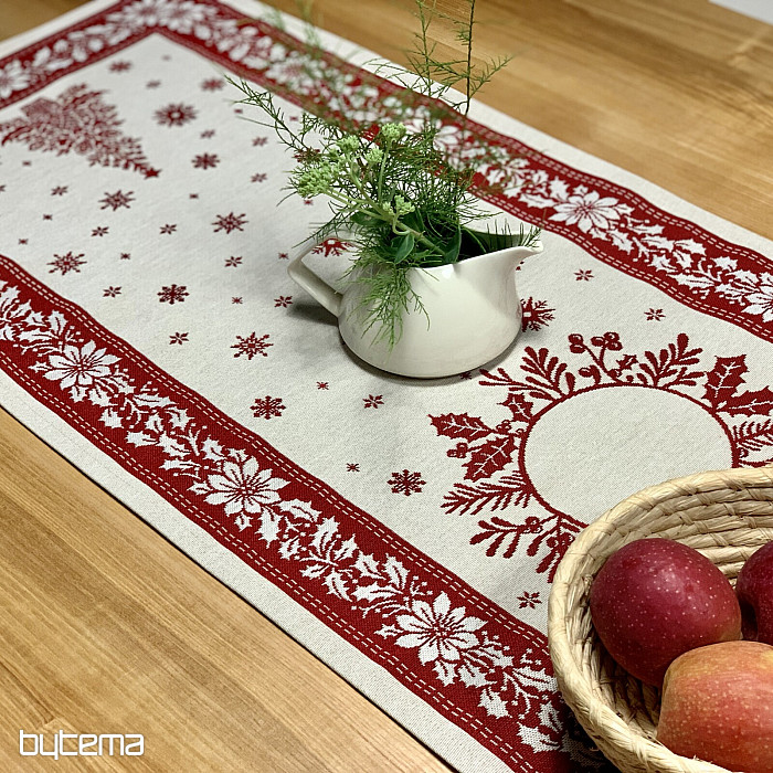 Obrus i szalik z motywem bożonarodzeniowym o delikatnym wzorze będą doskonałym uzupełnieniem świątecznego stołu.