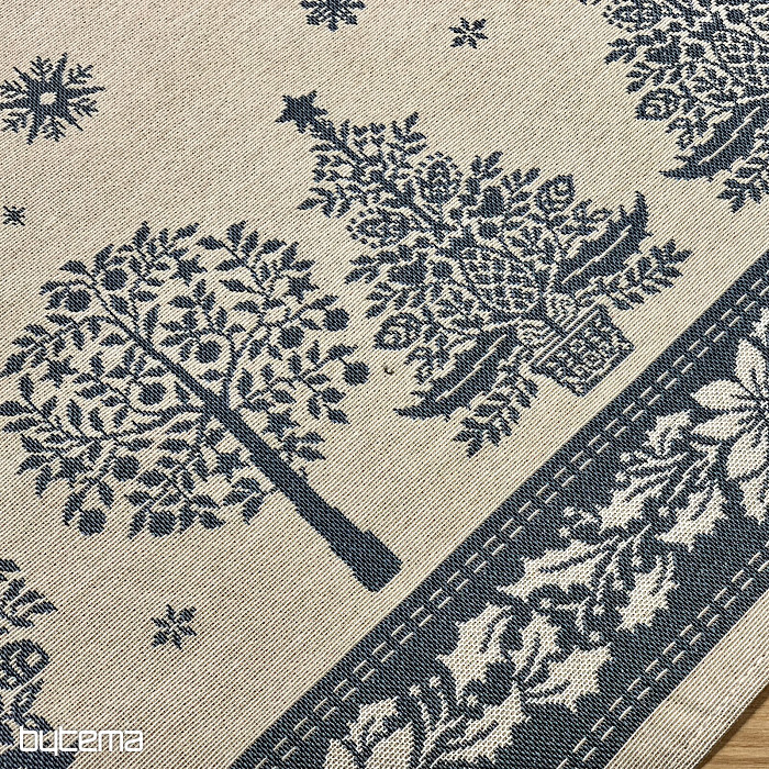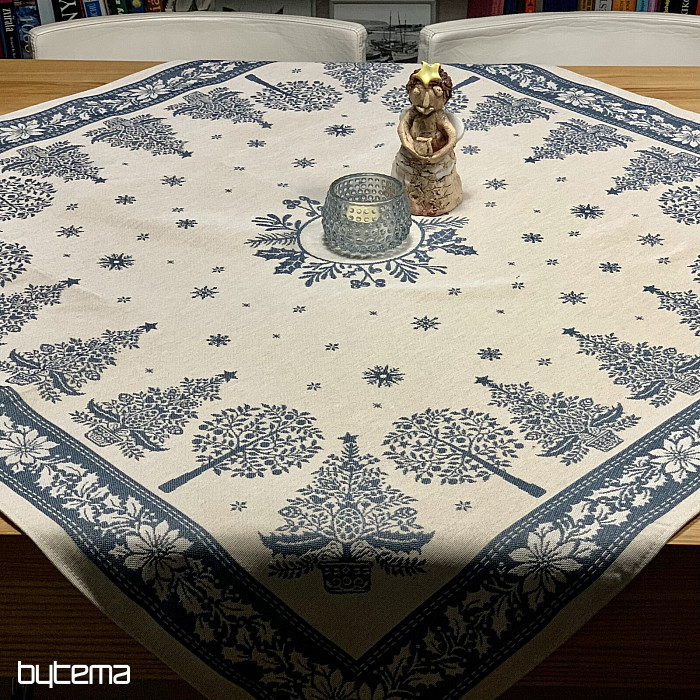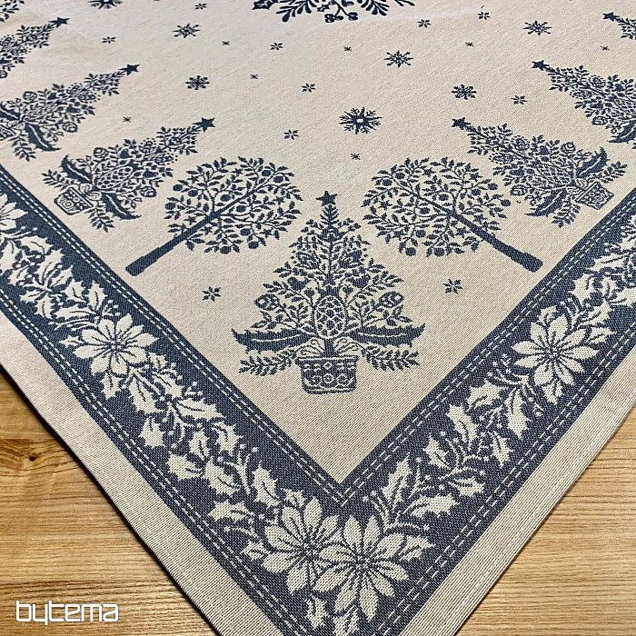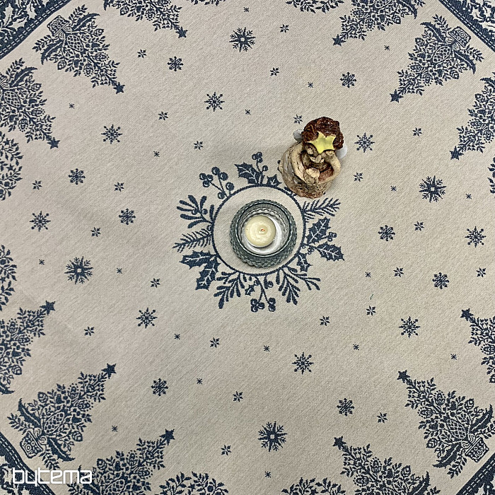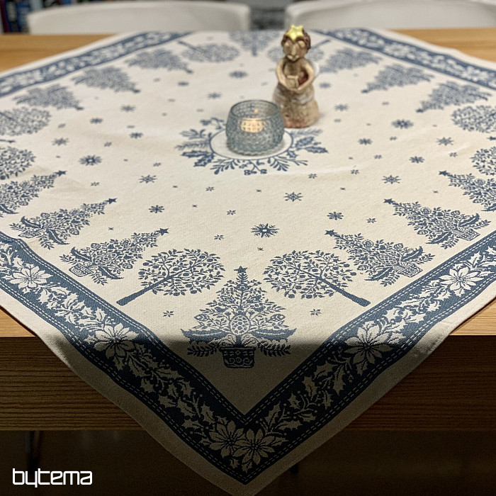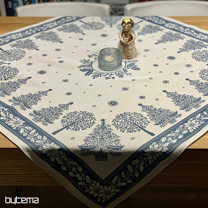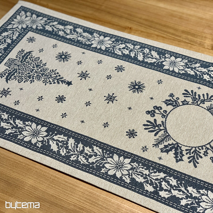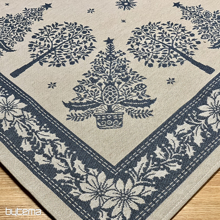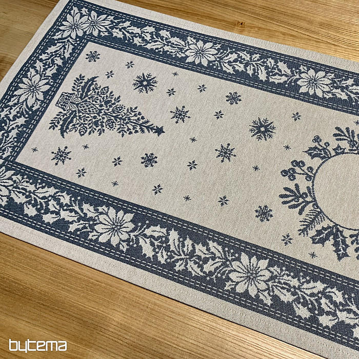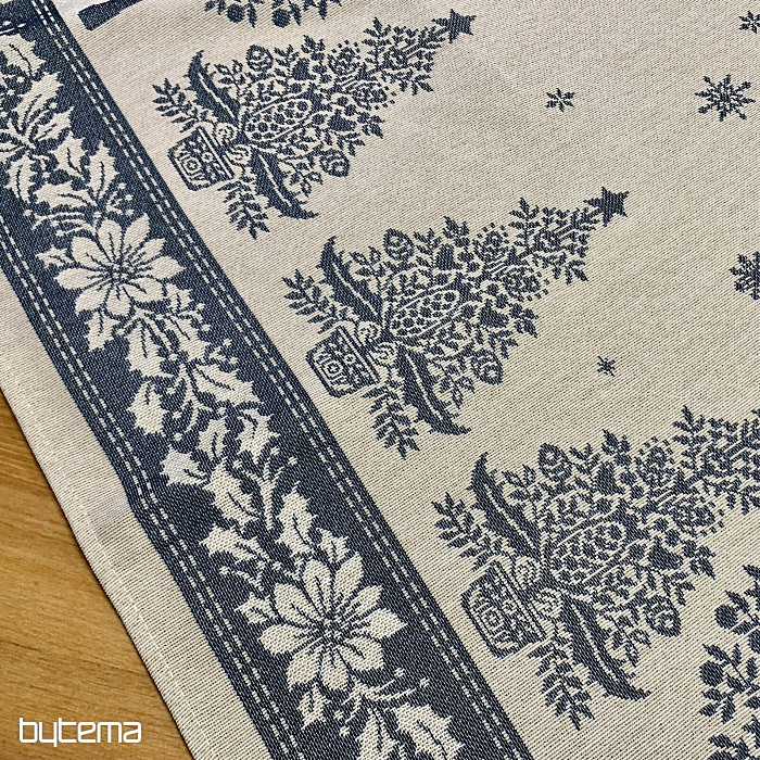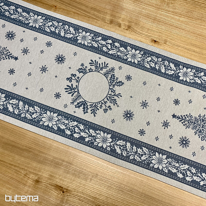Obrus i szalik z motywem bożonarodzeniowym o delikatnym wzorze będą doskonałym uzupełnieniem świątecznego stołu.