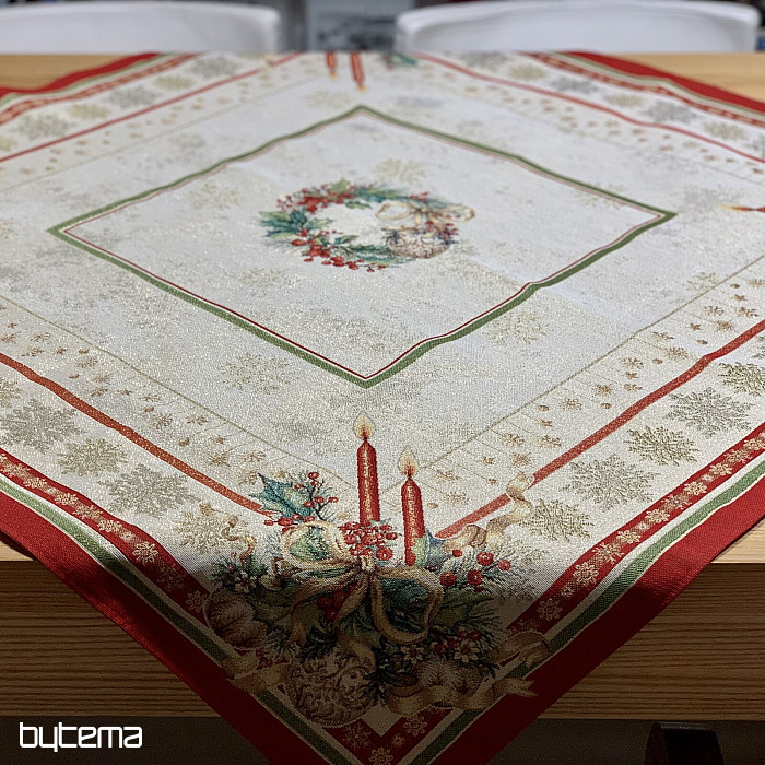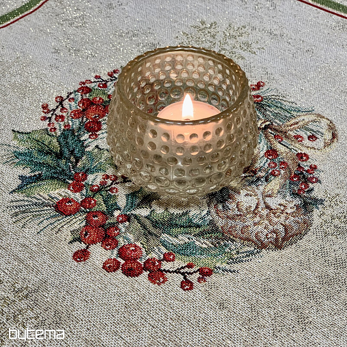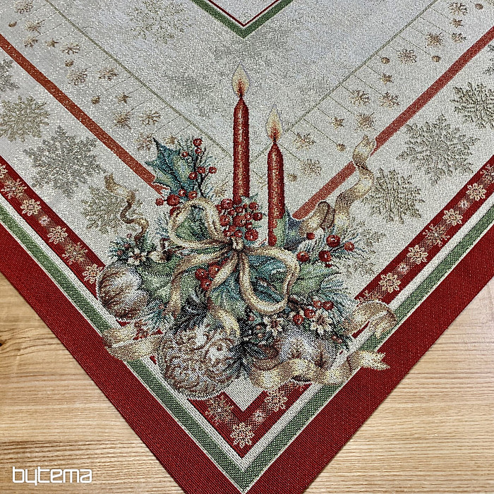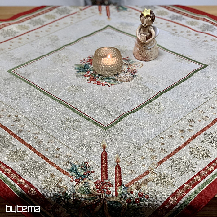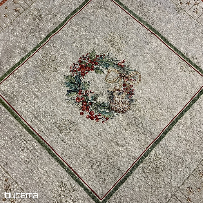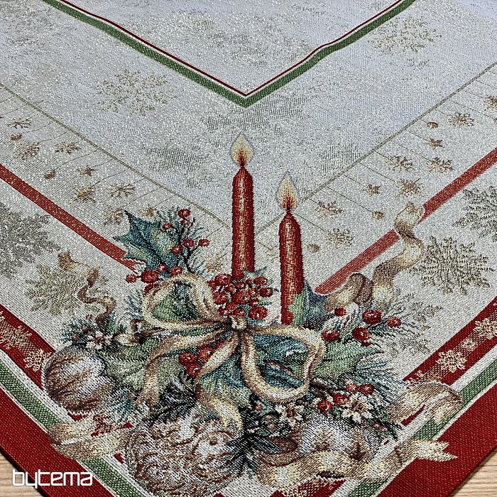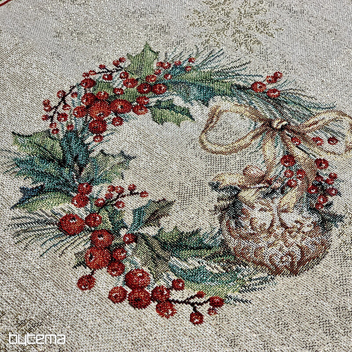 Obrusy ozdobione są złotymi nićmi lureksowymi, które dodają świątecznego klimatu.