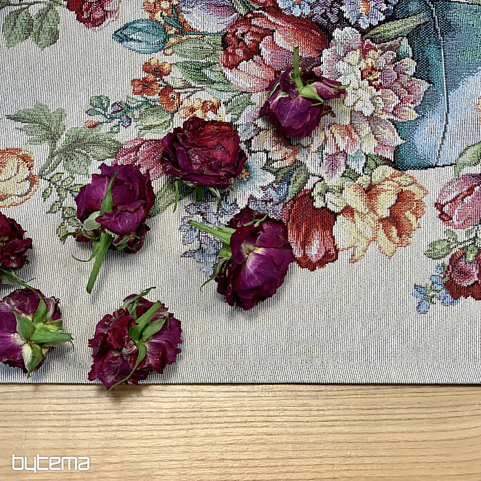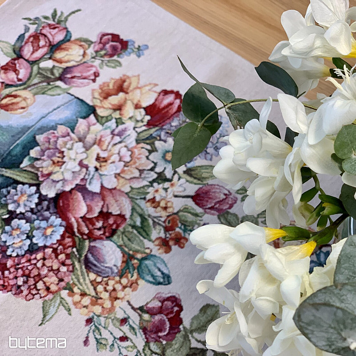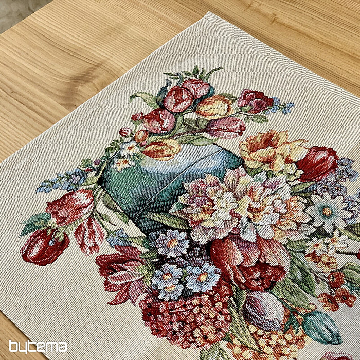 Obrus z gobelinu i szalik pełen wiosennych kolorów i kwiatów ozdobią każdy stół w Twoim domu. Możesz je pięknie zestawić z poszewką na poduszkę w tym samym wzorze. Twój dom będzie pełen wiosennych kwiatów.