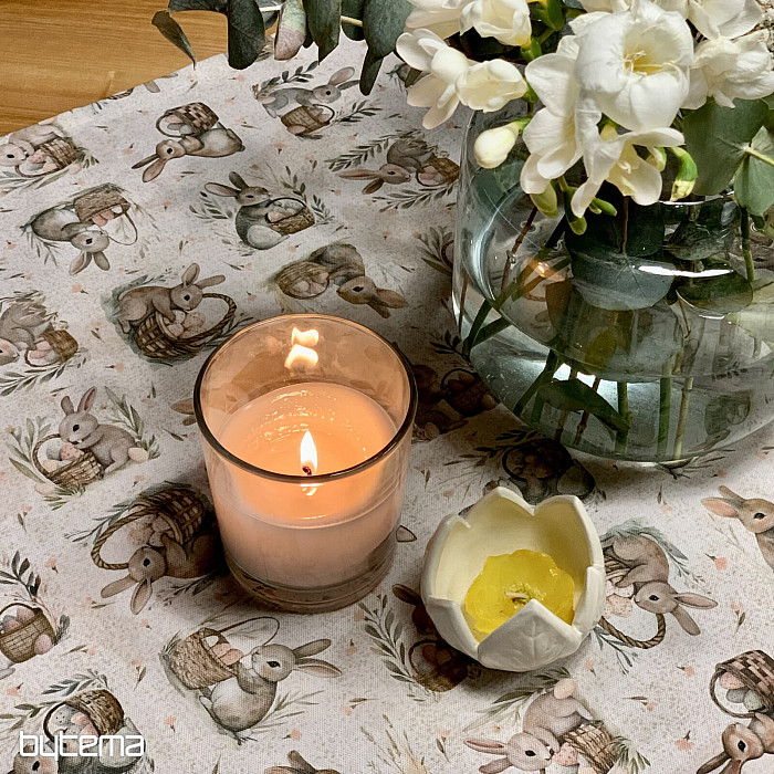Piękny wielkanocny obrus z małym króliczkiem Błażejem ozdobi Twój stół w świąteczny sposób.