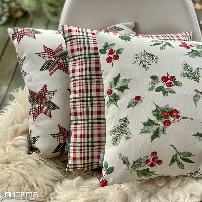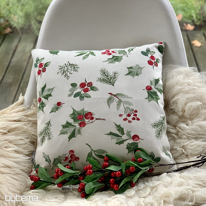 Dekoracyjna poszewka na poduszkę świąteczną z ostrokrzewem i czerwonymi jagodami jest symbolem Bożego Narodzenia i pasuje do każdego wnętrza, szczególnie w chłodniejszej porze roku.