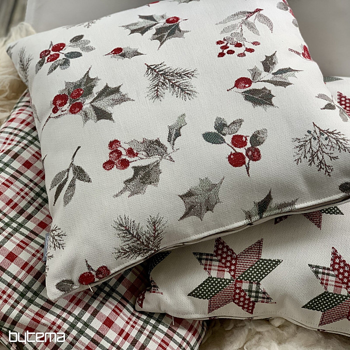 Dekoracyjna poszewka na poduszkę świąteczną z ostrokrzewem i czerwonymi jagodami jest symbolem Bożego Narodzenia i pasuje do każdego wnętrza, szczególnie w chłodniejszej porze roku.