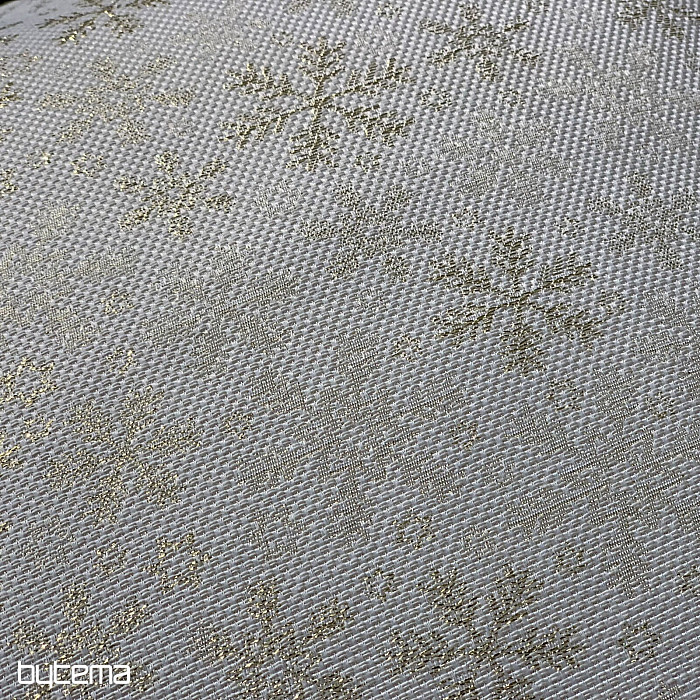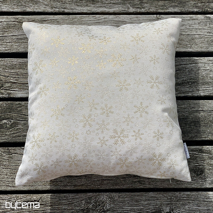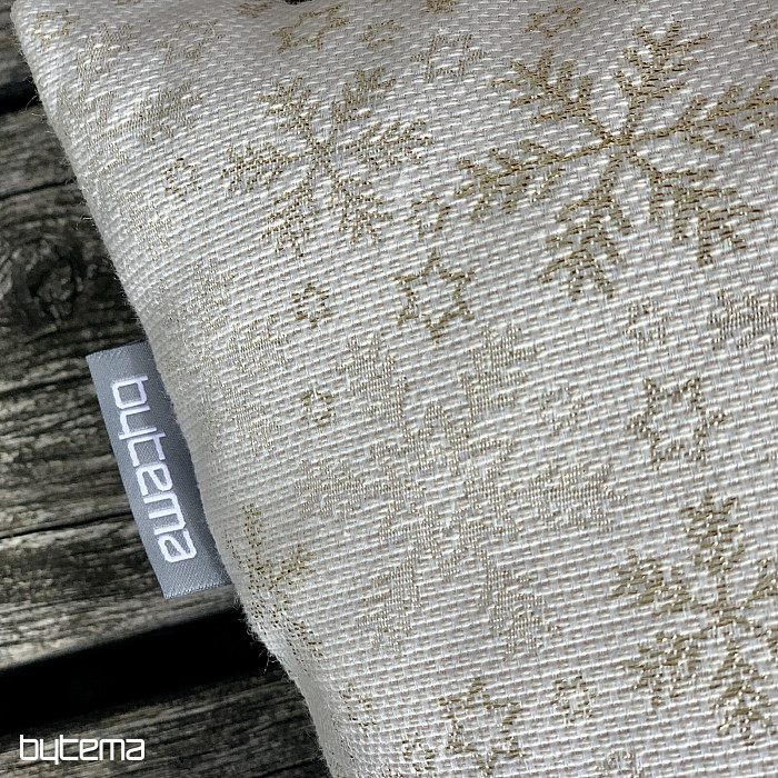 Dekoracyjne okładki świąteczne z wzorem pięknych dużych i małych złotych płatków śniegu na kremowym tle będą magiczną ozdobą Twojego domu.