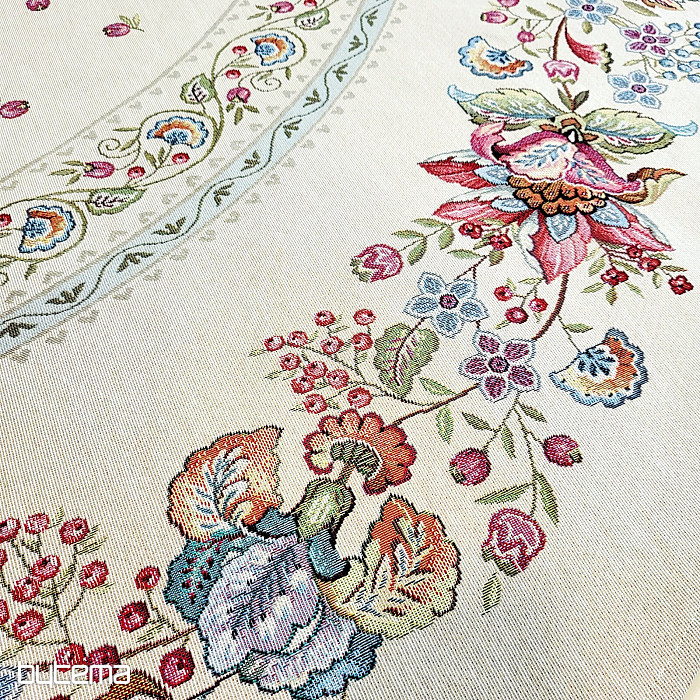 Okrągły obrus z malowanymi kwiatami. Piękno i delikatność w każdym detalu.