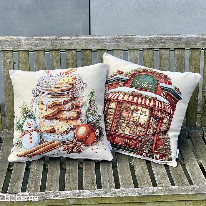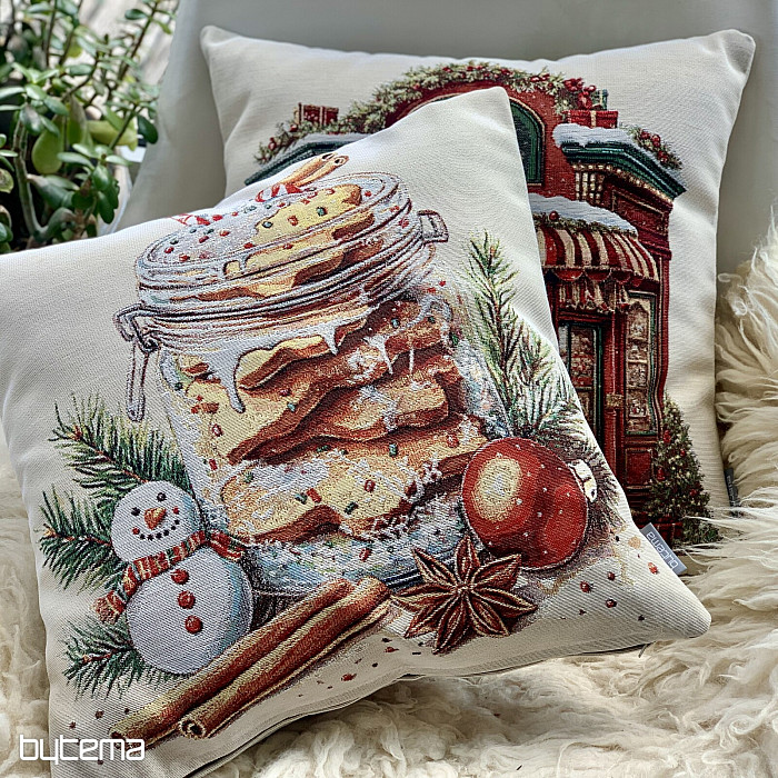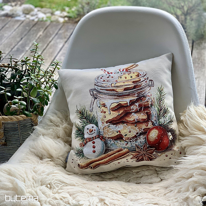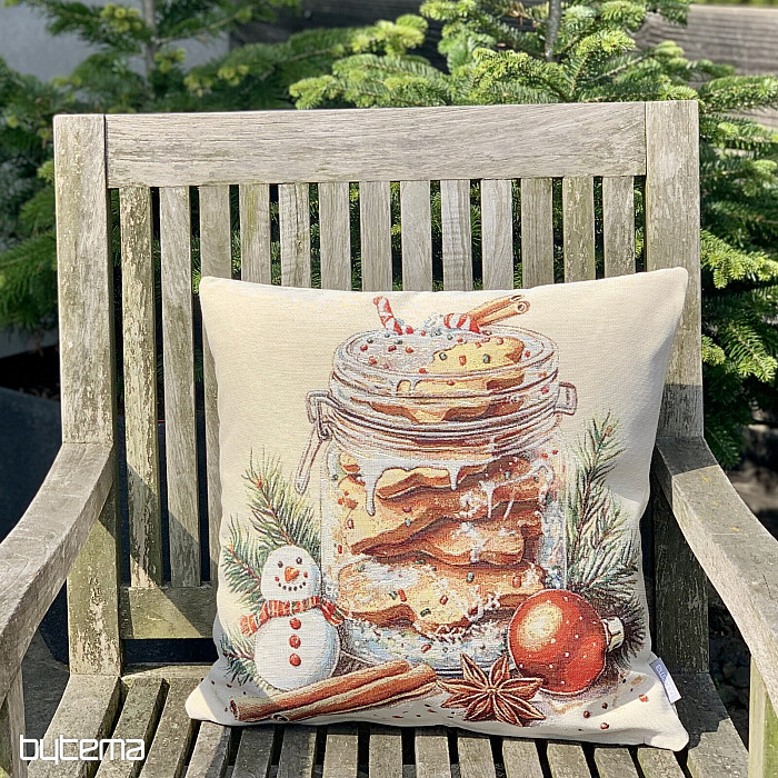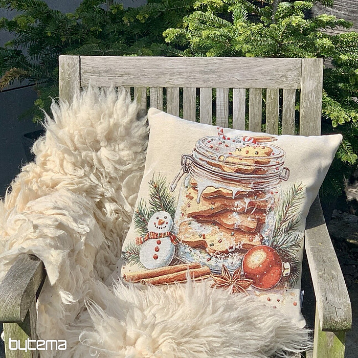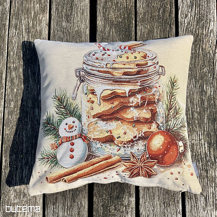 Gobelin z piernikowymi ciasteczkami umieszczonymi w przezroczystym szkle przywoła zapach i smak świąt.