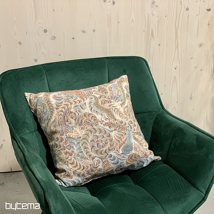 Nowoczesna poduszka dekoracyjna wykonana z tkaniny gobelinowej, idealna jako element kontrastowy do współczesnego wnętrza.