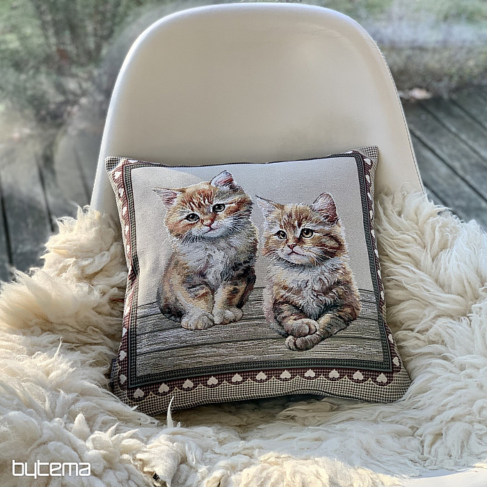 Poszewka na poduszkę z gobelinu z uroczymi kociakami. Piękny prezent dla wszystkich miłośników kotów.
