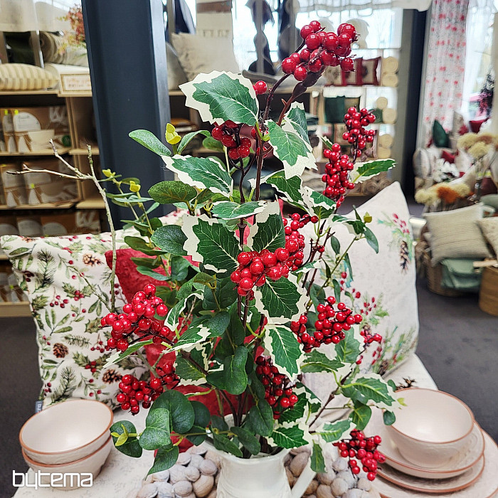 Ozdoba na zimę. Gałązka o długości 90 cm ma ciemnoczerwone jagody, idealne do dekoracji wnętrz i na zewnątrz.