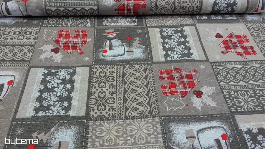 Dekoracyjna tkanina świąteczna w serduszka w trzech wariantach kolorystycznych, piękna tkanina do wnętrz w stylu rustykalnym i wiejskim.