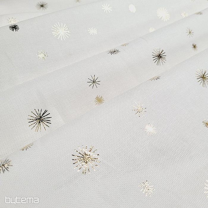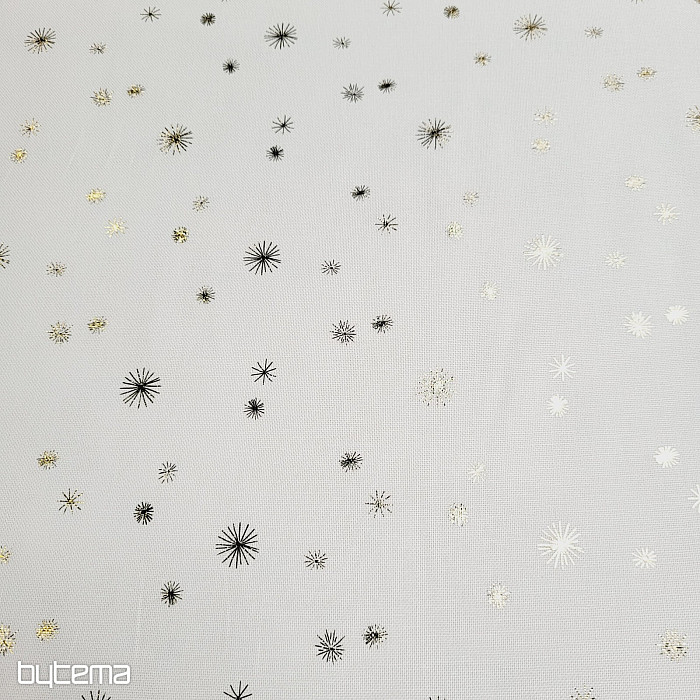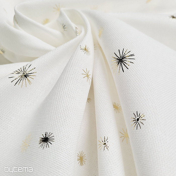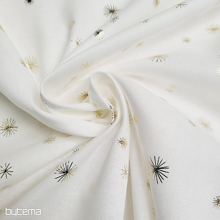 Grubsza tkanina bawełniana PŁÓTNO ze złotymi gwiazdkami lub płatkami bożonarodzeniowymi, doskonale nadaje się na obrusy, podkładki i/lub poszewki na poduszki.