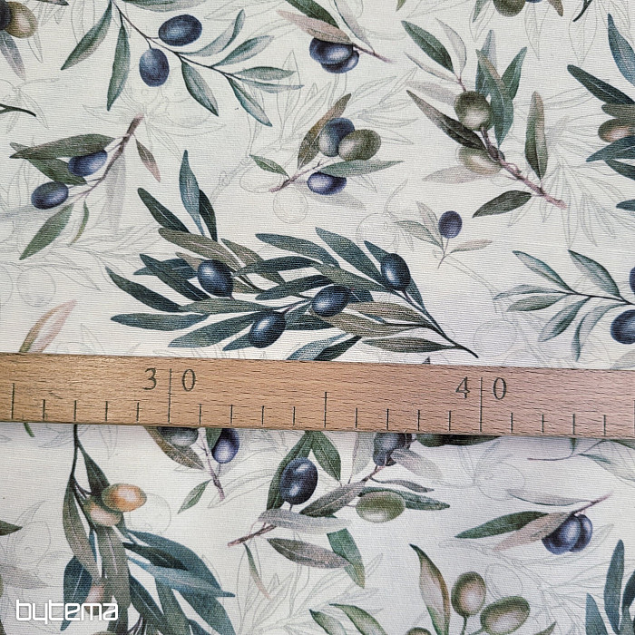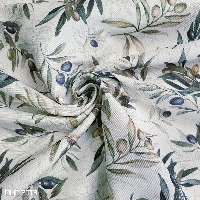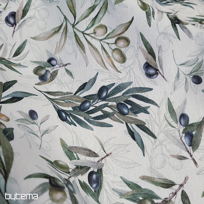 Tkanina dekoracyjna z motywem oliwkowym ma świeży, śródziemnomorski wygląd i doskonale sprawdzi się w kuchni, jadalni lub letniej aranżacji.