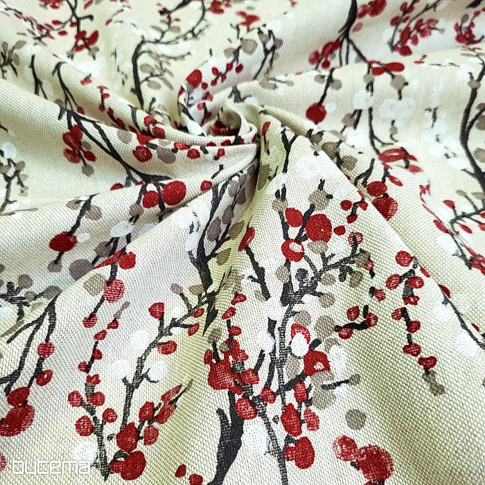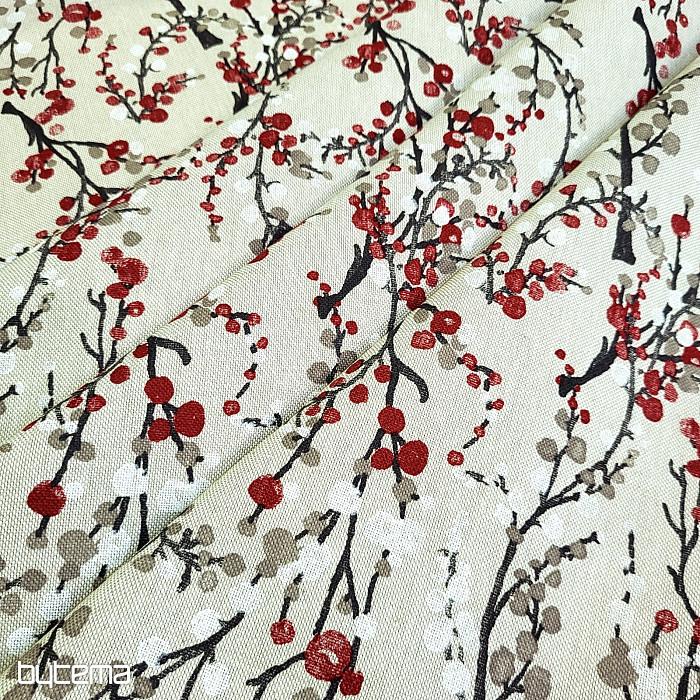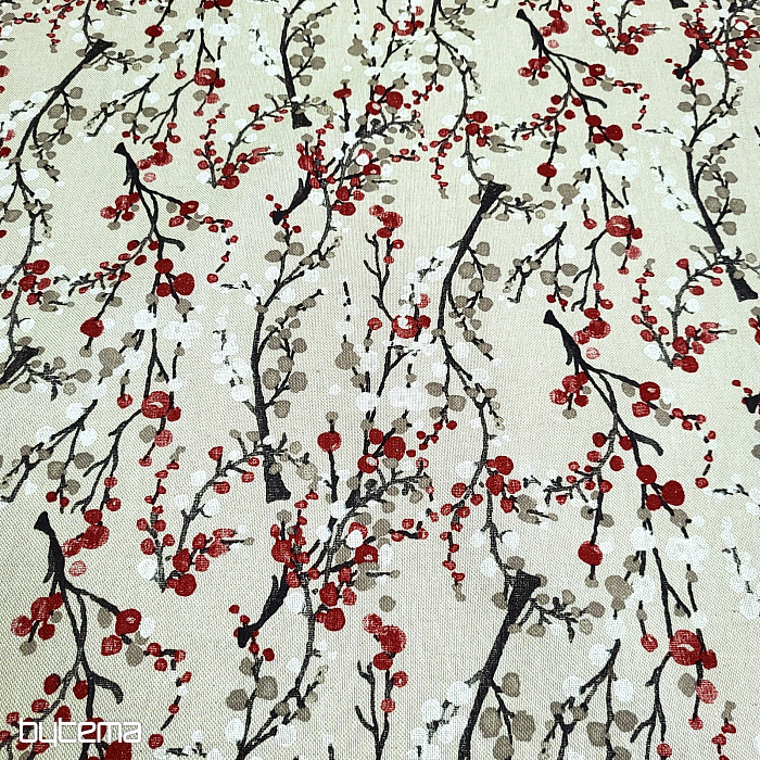 Tkanina dekoracyjna z wzorem gałązek.