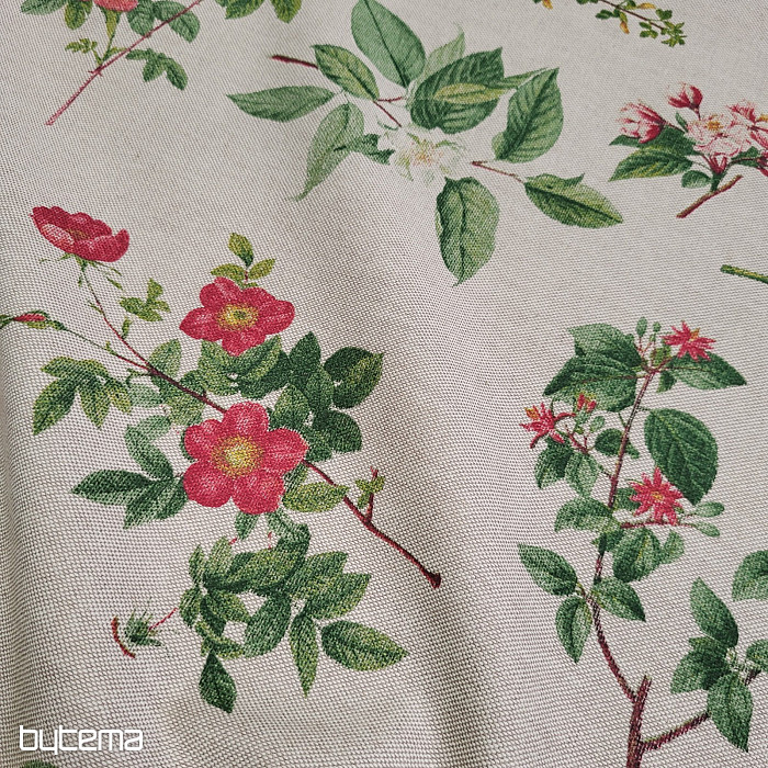 Dekoracyjna tkanina z motywem kwiatów na jednolitym tle będzie piękną ozdobą Twojego domu.