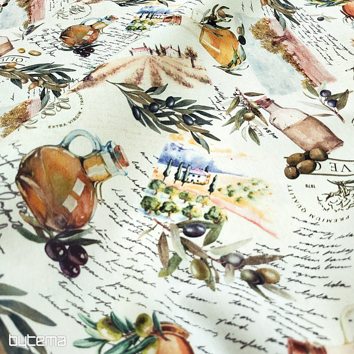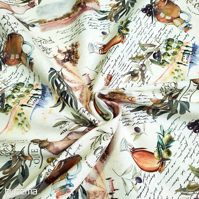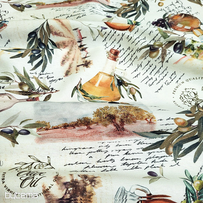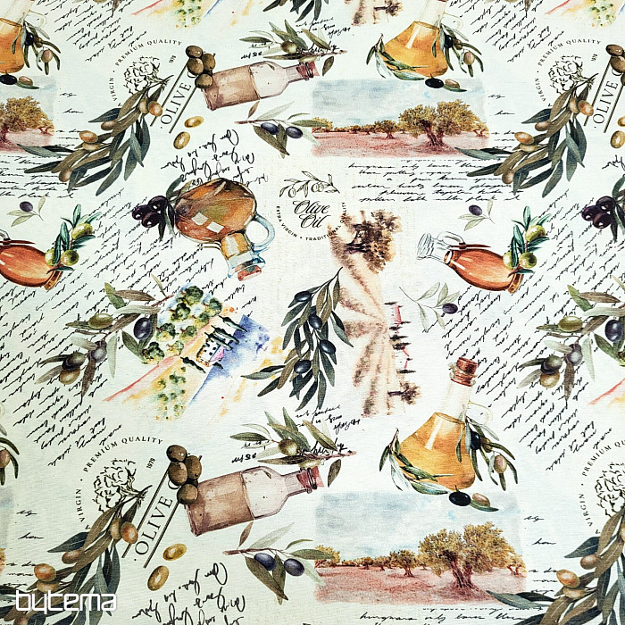 Tkanina dekoracyjna z motywem oliwkowym ma świeży, śródziemnomorski wygląd i doskonale sprawdzi się w kuchni, jadalni lub letniej aranżacji.