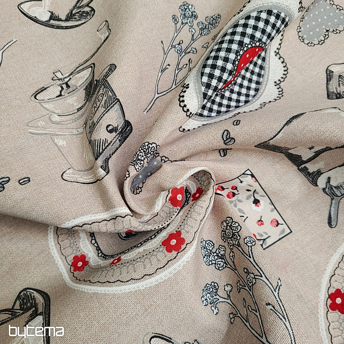 Z tkaniny można uszyć nowoczesne zasłony, szaliki i obrusy. Poduszka będzie doskonałym uzupełnieniem tej serii. Twoja kuchnia dosłownie wypełni się aromatem kawy.