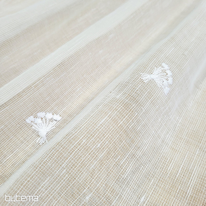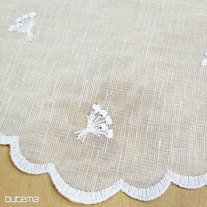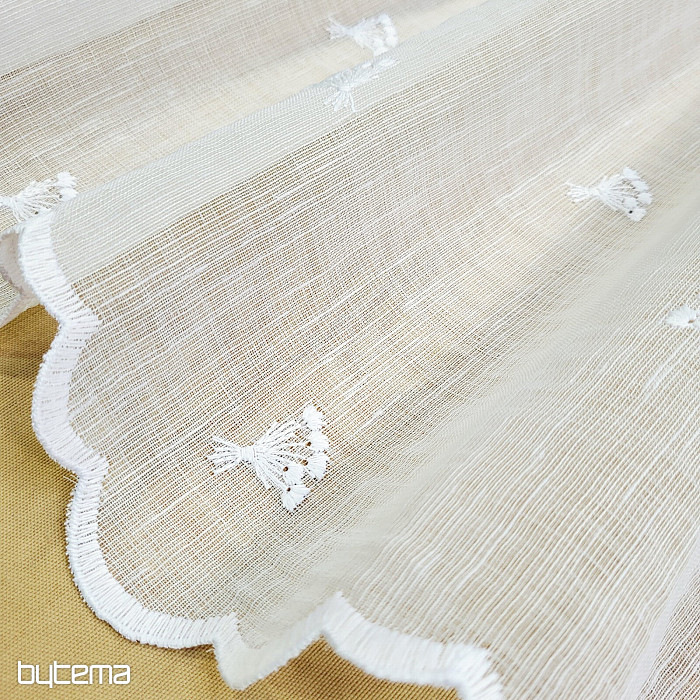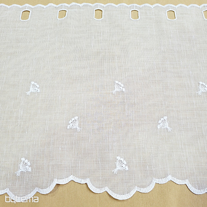 Oferujemy zasłonę w trzech wysokościach. W wysokości 60 cm i 90 cm zasłona ma haftowany kwiat pośrodku panelu.