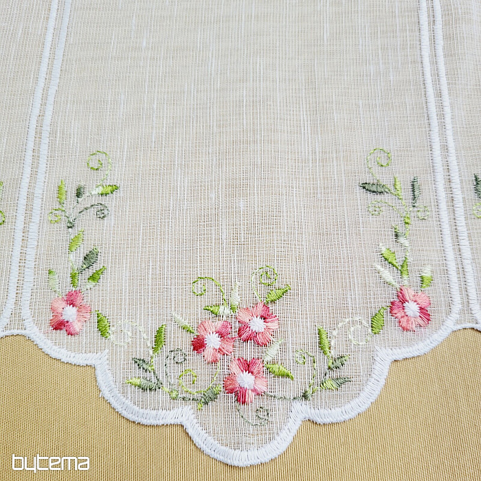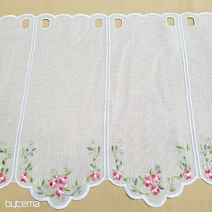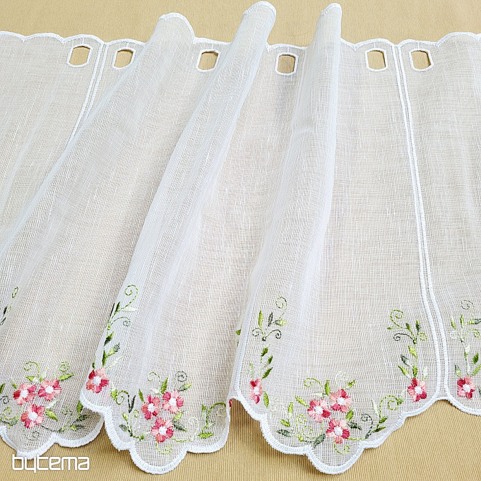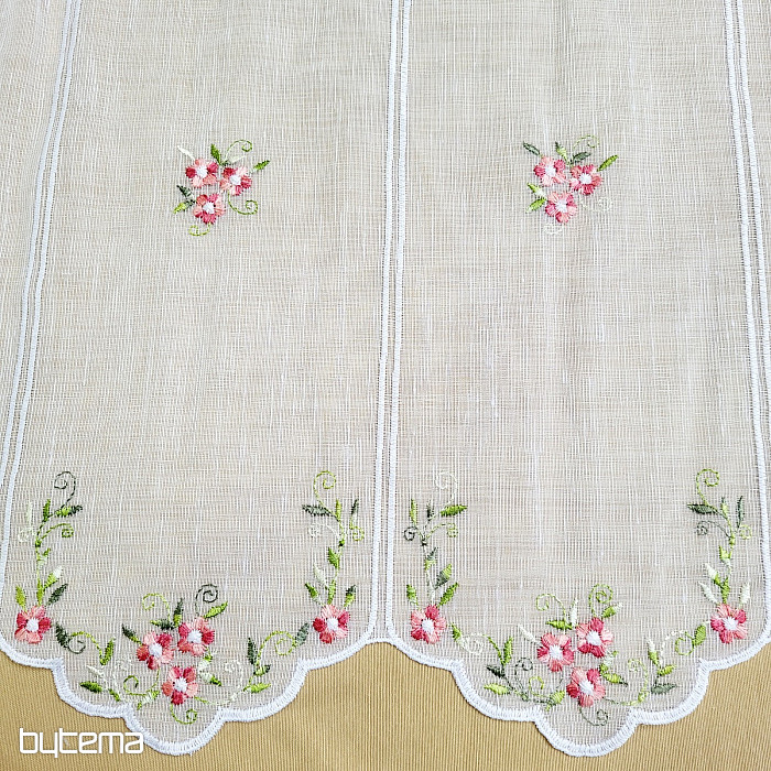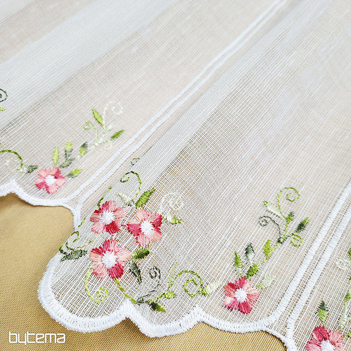 Oferujemy zasłonę w trzech wysokościach. W wysokości 60 cm i 90 cm zasłona ma haftowany kwiat pośrodku panelu.