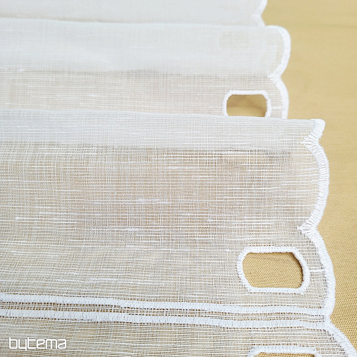 Wszystkie rozmiary posiadają przelotki do nawleczenia na karnisz witrażowy. Zasłona jest cięta na panele, nie wymaga szycia.