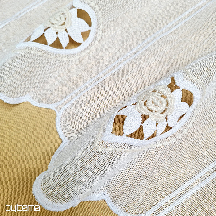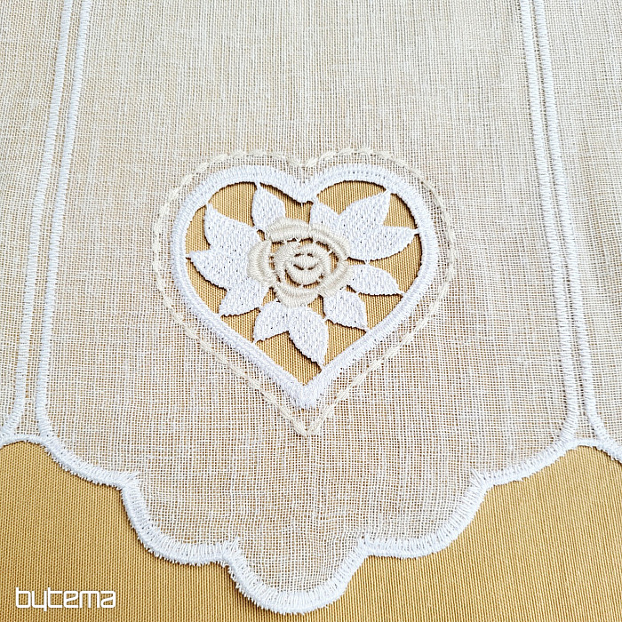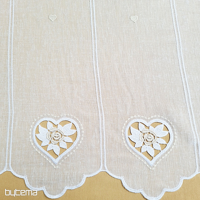 Zasłona ma 70 cm wysokości i pośrodku wyszyte jest małe serduszko.