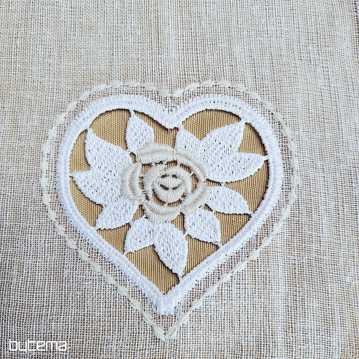 Piękna, vintage'owa zasłona z rzeźbionym beżowo-białym serduszkiem. Zasłona jest bardzo miękka i przyjemna w dotyku, idealna do drewnianych okien lub małych okien.