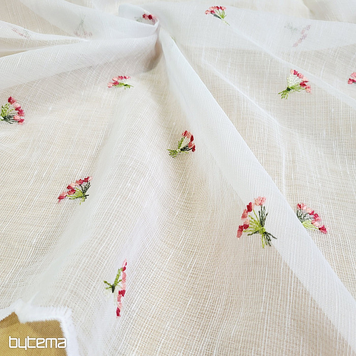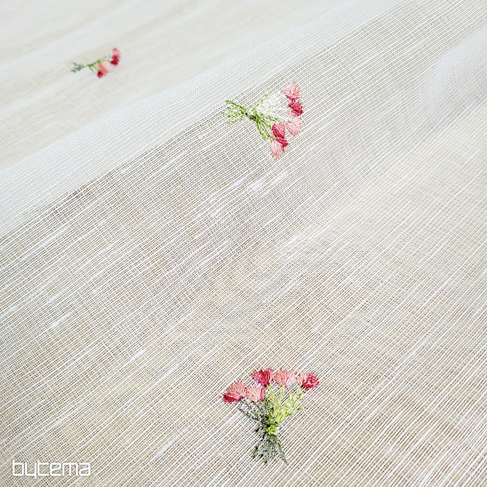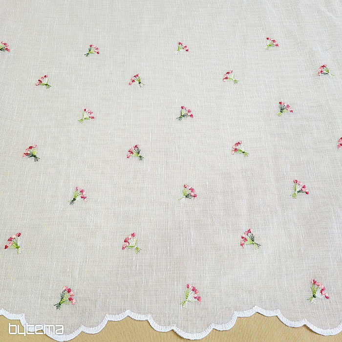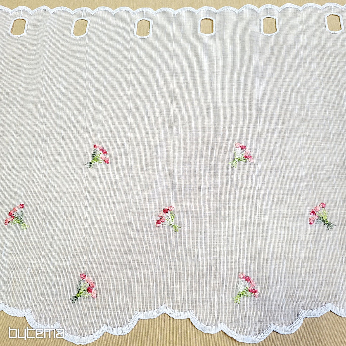 Oferujemy zasłonę w trzech wysokościach. W wysokości 60 cm i 90 cm zasłona ma haftowany kwiat pośrodku panelu.