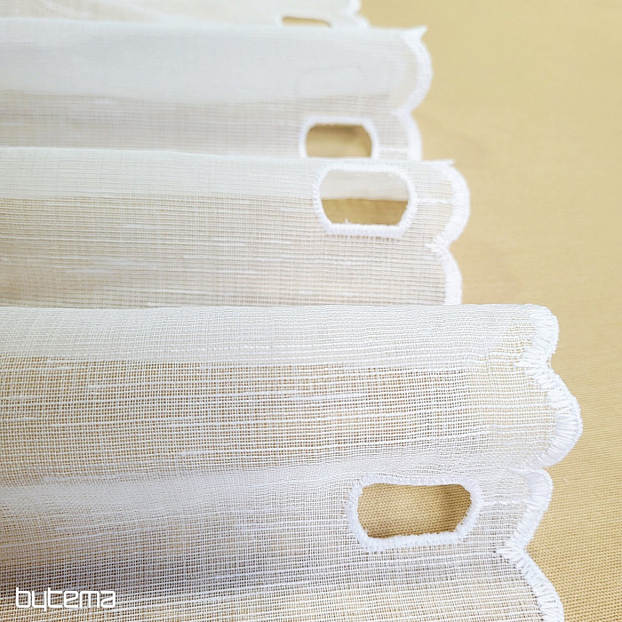 Wszystkie rozmiary posiadają przelotki do nawleczenia na karnisz witrażowy. Zasłona jest cięta na panele, nie wymaga szycia.