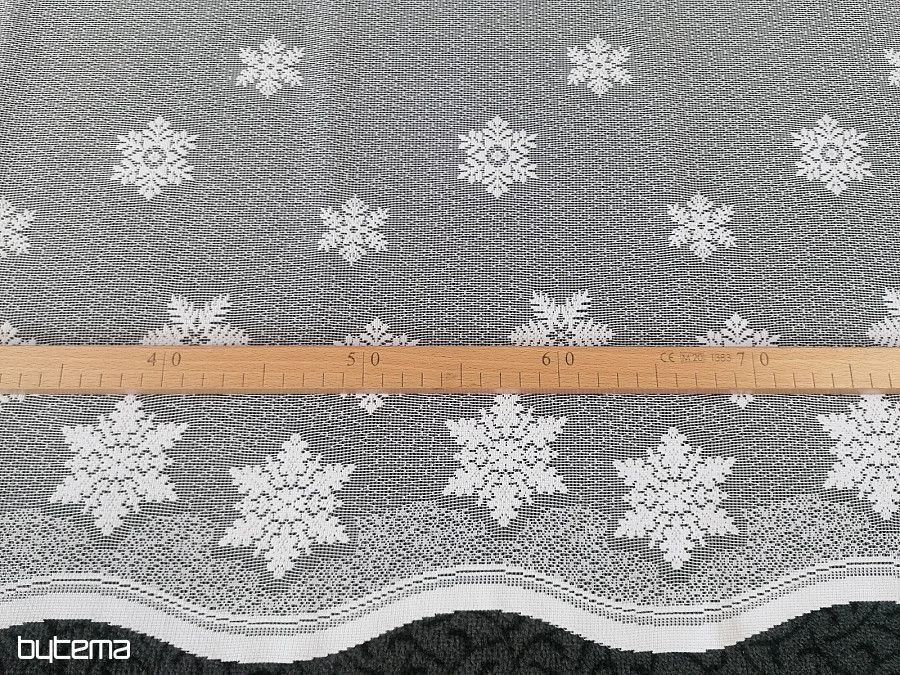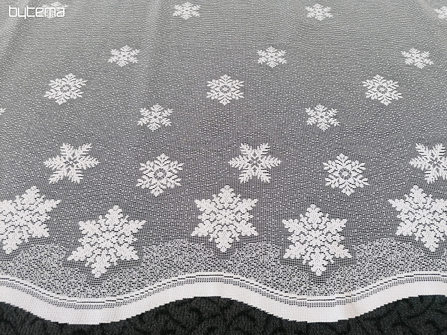 Zasłona żakardowa na witraż z bożonarodzeniowym motywem płatków śniegu.