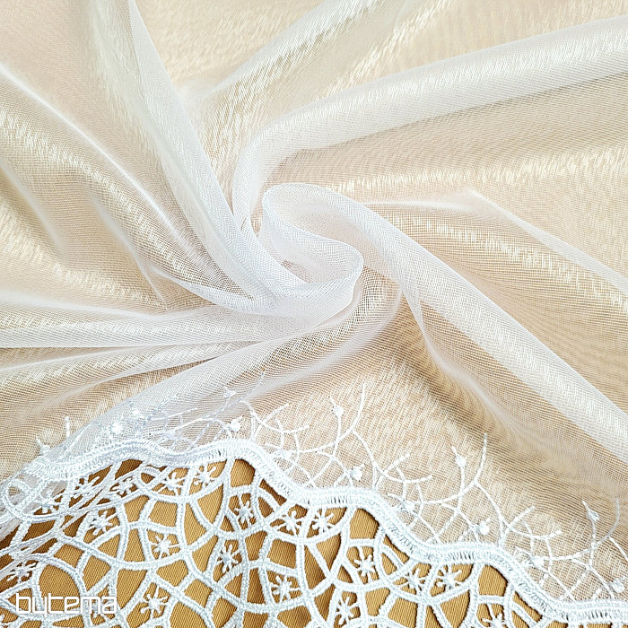 Luksusowa dekoracyjna zasłona z piękną bordiurą niemieckiego producenta GERSTER o bardzo nowoczesnym wzornictwie i ponadczasowym wyglądzie.